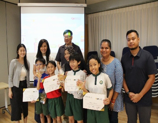 SIC Platinum Award Winners for 2D Game Development – Most Engaging Experience (Wong Min You Marquez 5B, Neev Nakra 5C, Kellen Kwah Kai Le 5F & Xu XinMing 5C (not in picture)