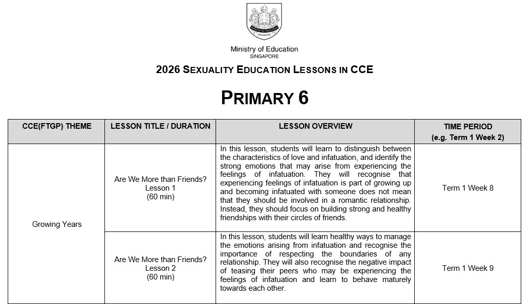 OVERVIEW OF TANJONG KATONG PRIMARY SCHOOL’S SEXUALITY EDUCATION PROGRAMME FOR 2026.
